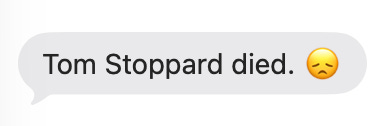 Because the refrain has been continuously playing in my head since I learned of Tom Stoppard’s death. Because I am grateful for his work.